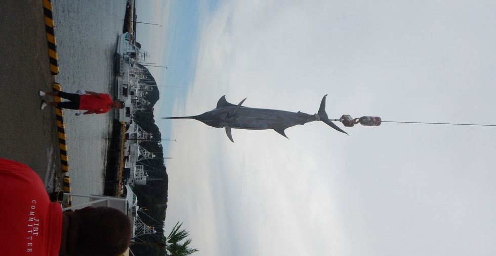 Round weight was 134 kg. Caught by trolling. Photo taken with cooperation of Japan Game Fish Association (JGFA), during the Japan International Billfish Tournament.